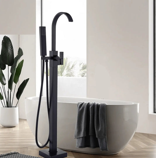 SALE SaniSupreme Florence freestanding bath tap with matte black hand shower