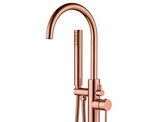 SaniSupreme Freestanding Bath Mixer Tap Aloni with Hand Shower Brass Brushed Copper