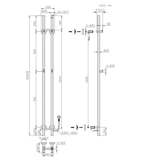 Bathroom Electric Radiator Towel Heater 1600 x 500 Blackline matt black