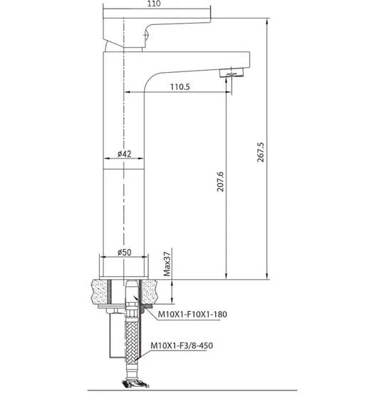 SaniSupreme Bari washbasin tap surface-mounted high model wide spout matt black