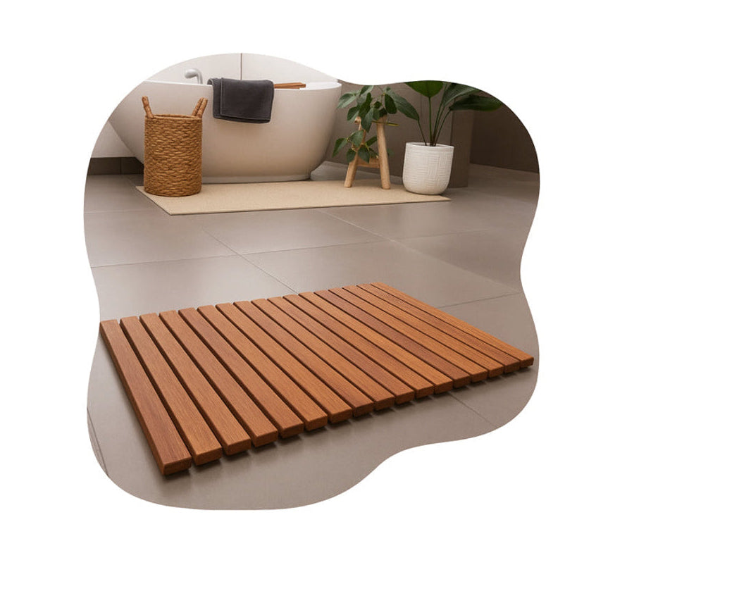 Transformez votre salle de bain en un véritable spa grâce à ces tapis de bain en bois exotique authentique certifiés FSC.