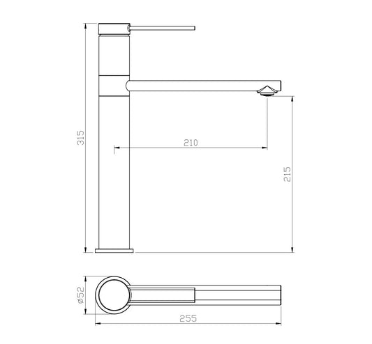 Robinet de lavabo design SaniSupreme Nordica, mitigeur incurvé à montage en surface, entièrement brossé argent