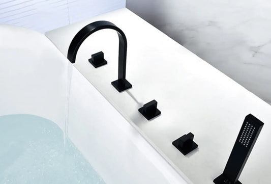 Robinet de baignoire SaniSupreme San Marino, encastré - modèle mitigeur à poser avec douchette, finition noir mat