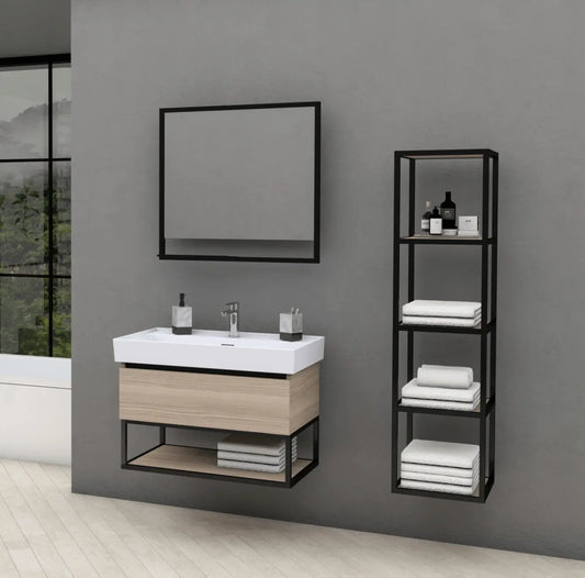 Meuble vasque SaniSupreme® Aloni Sharp avec meuble lavabo, noir mat, 80 cm.