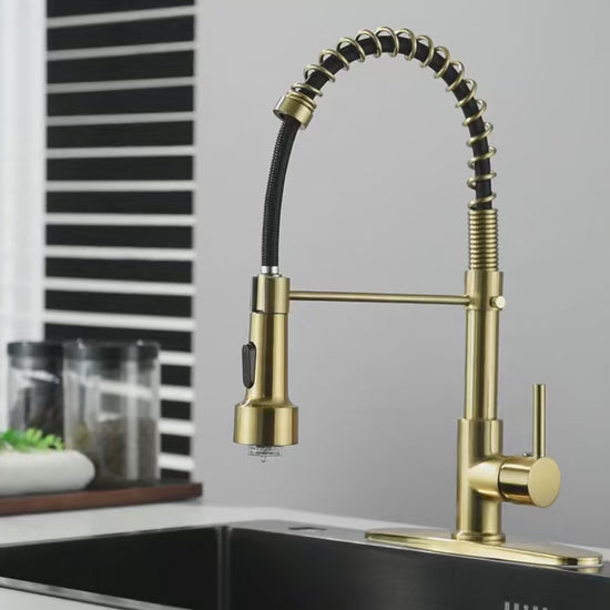 SaniSupreme Keukenkraan Pull-down Bologna gebogen met veer Goud Geborsteld