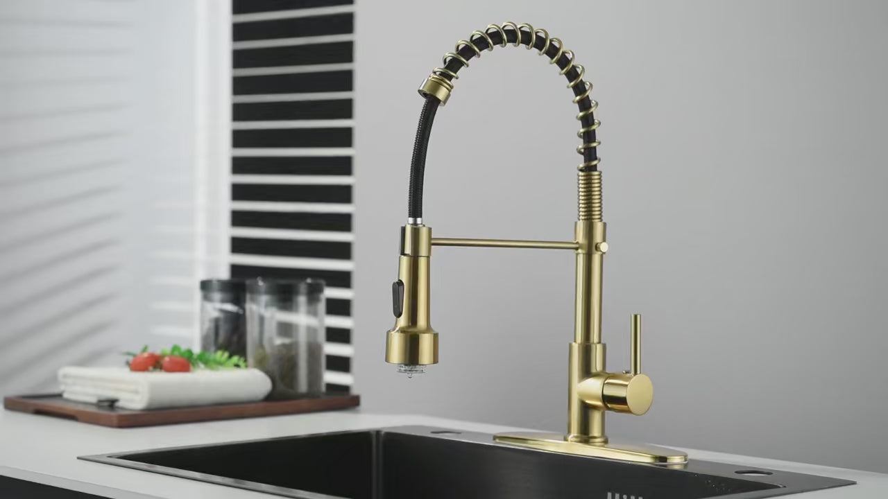SaniSupreme Keukenkraan Pull-down Bologna met veer Goud Geborsteld