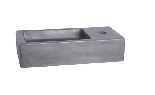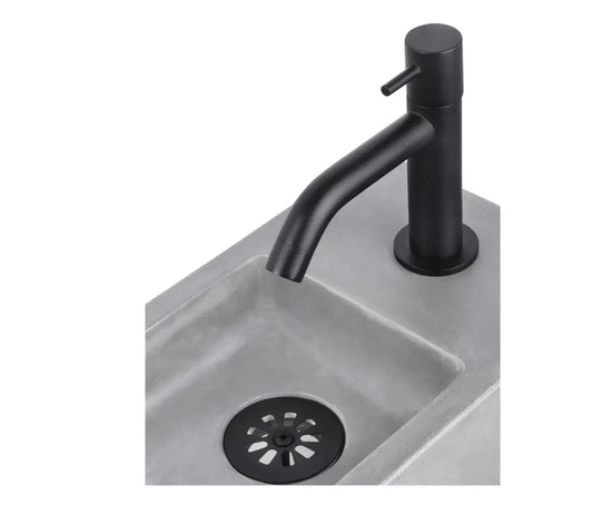 SaniSupreme Force Fonteinset 40x22x8cm 1 kraangat gebogen mat zwarte kraan met sifon en afvoerplug fontein Rechthoek Beton Donker grijs
