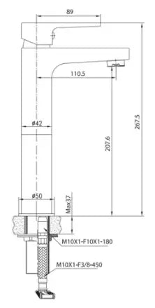 SaniSupreme Memphis wastafel kraan opbouw hoog model gebogen uitloop mat zwart
