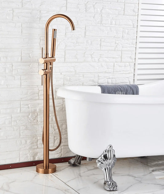 SaniSupreme Badkraan Ancona vrijstaand model met handdouche geborsteld koper