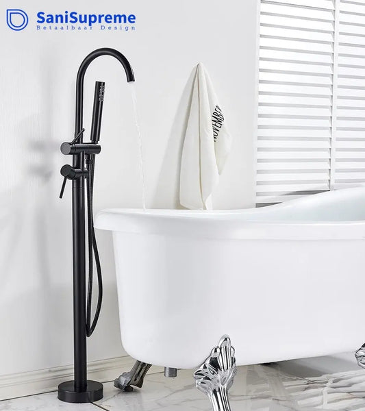 SaniSupreme Badkraan Ancona vrijstaand model met handdouche mat zwart