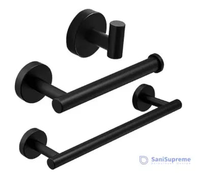 SaniSupreme Badkamerset Brasil: handdoekrek, handoekhaak en toiletrolhouder, mat zwart