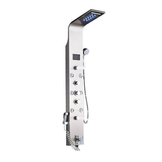 Douchepaneel Opbouwdouche SaniSupreme® Sicilie met hand- en voetendouche LCD Premium Geborsteld Zilver