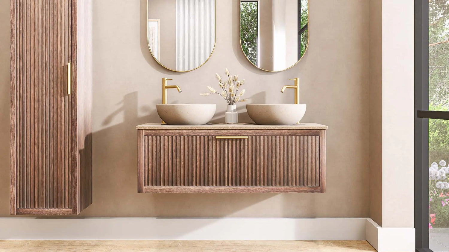 SaniSupreme Bali Walnut Basin Set with Washbasin (L+R) Matt White