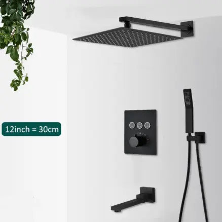 SaniSupreme Shower set Manhattan Premium 12 inch rain shower square 2-way black built-in