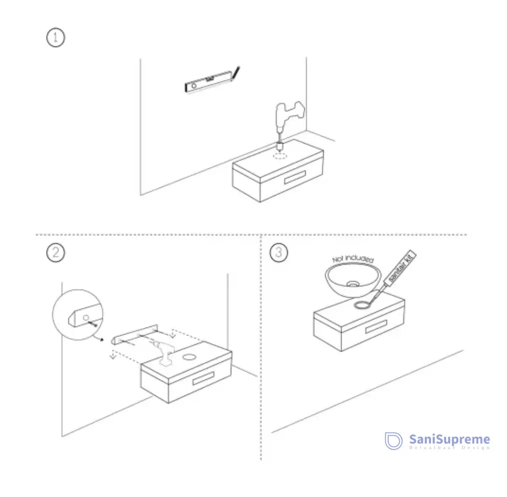 The Fountain Shelf is supplied without a sink, tap and drain. You can order these separately in the webshop.