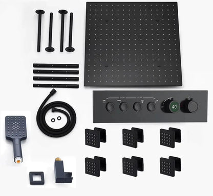 SPECIAL OFFER: SaniSupreme®SmartPulse Ceiling Thermostatic Shower Set Alicante 3-way Recessed Ceiling LED rain shower La Paz Matt Black