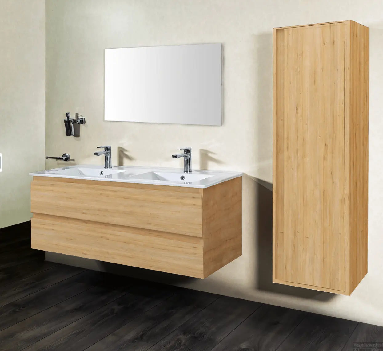 SaniSupreme® Bathroom Furniture Monaco 120 Oak ceramic double sink white