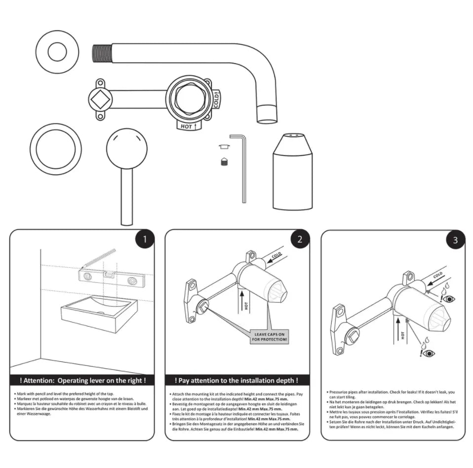 The easy-to-assemble wall tap has an attractive and modern design and is easy to clean. The execution and design make the tap a real eye-catcher. You can easily control the temperature and water volume.