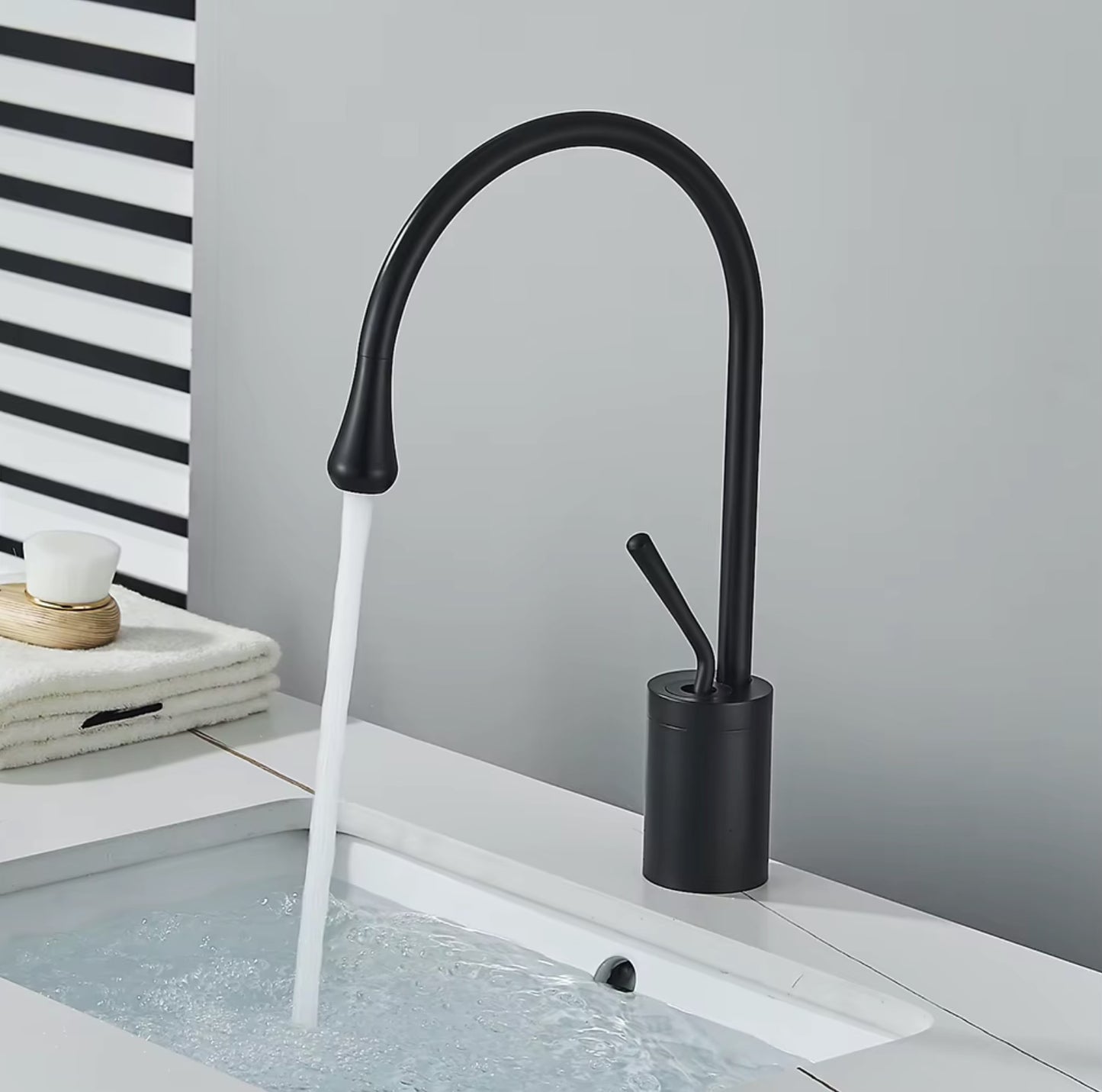 This is the modern quality line of washbasin taps and consists of various color variants and cold and hot water models.