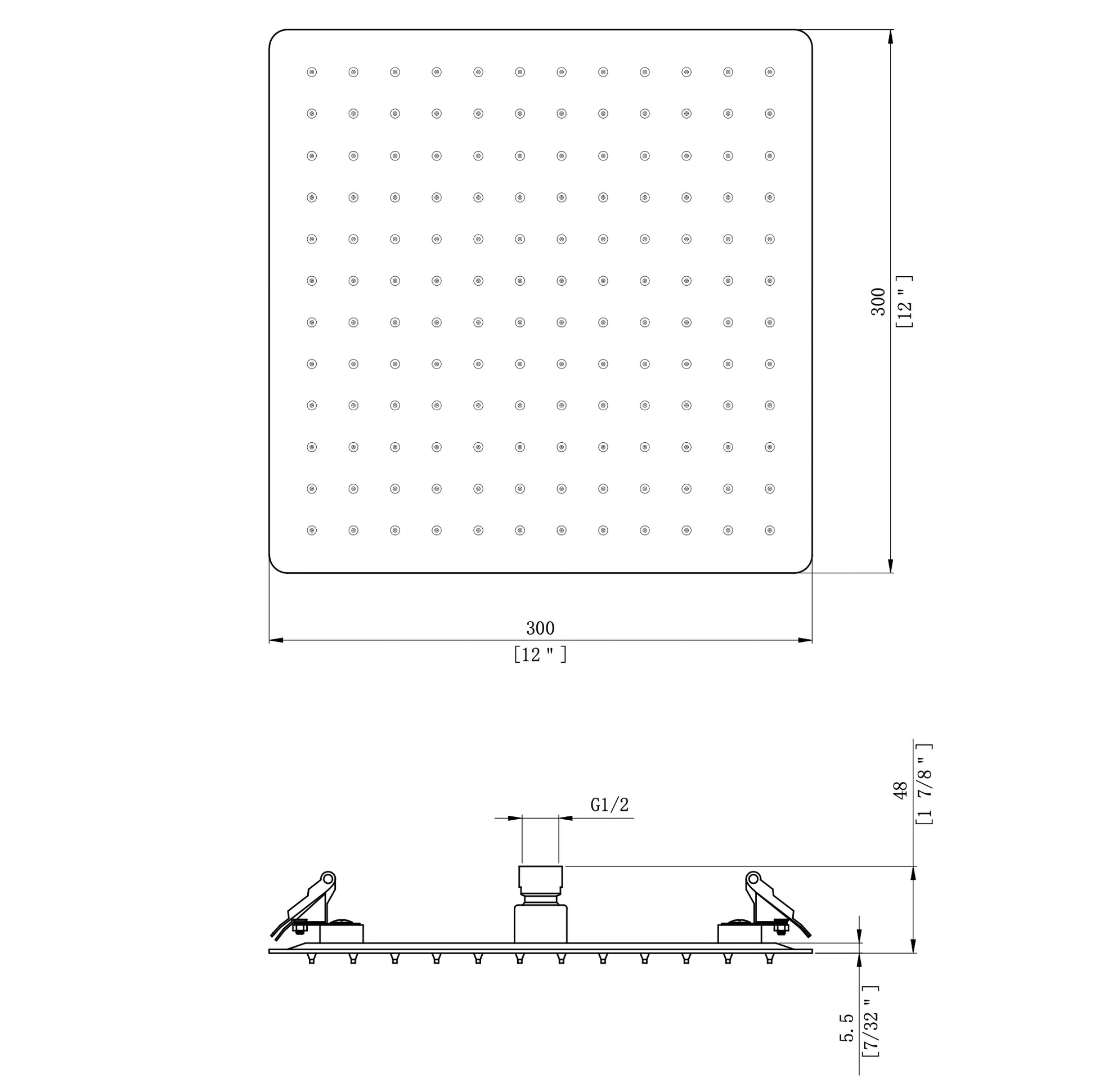 made of stainless steel and anti-limescale layer. Durable shower head, easy to clean with 1/2 connection (standard). Also available as 8 inch (20 cm.) 10 inch 25 cm. and 12 inches (30 cm.)
