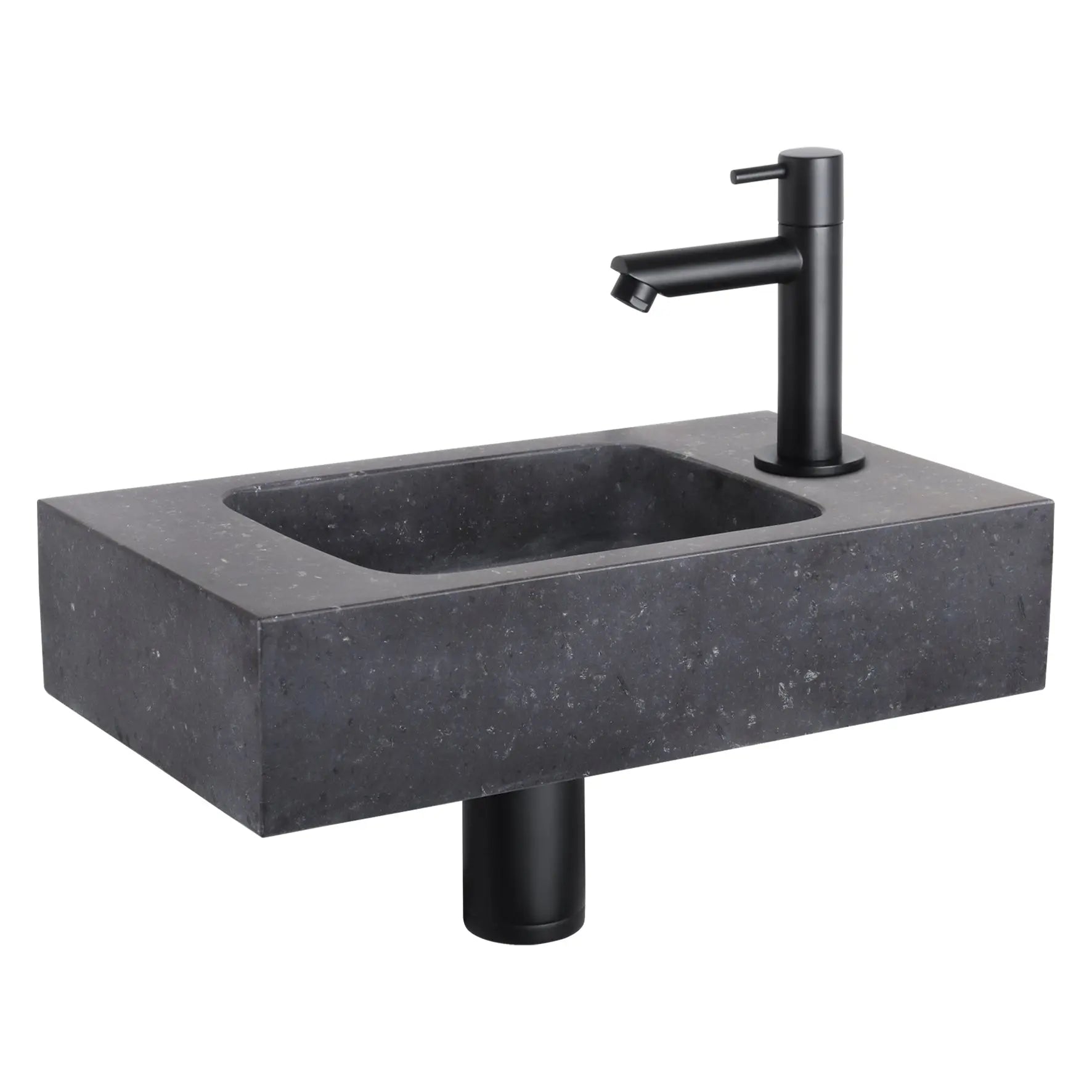 Give your restroom a luxurious and modern look with the Sanisupreme Force hand basin set . This complete set includes a natural stone hand basin in Bombai Black , a stylish , straight tap in matte black, a matching waste, and a siphon . Thanks to the high-quality materials and timeless design, this hand basin set is a real eye-catcher in any restroom.