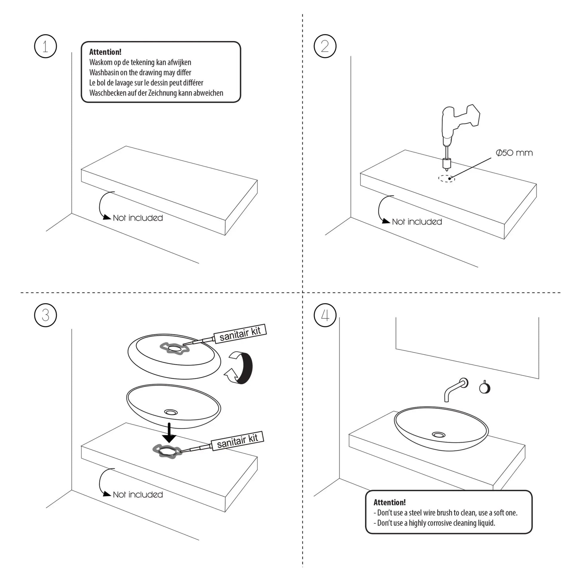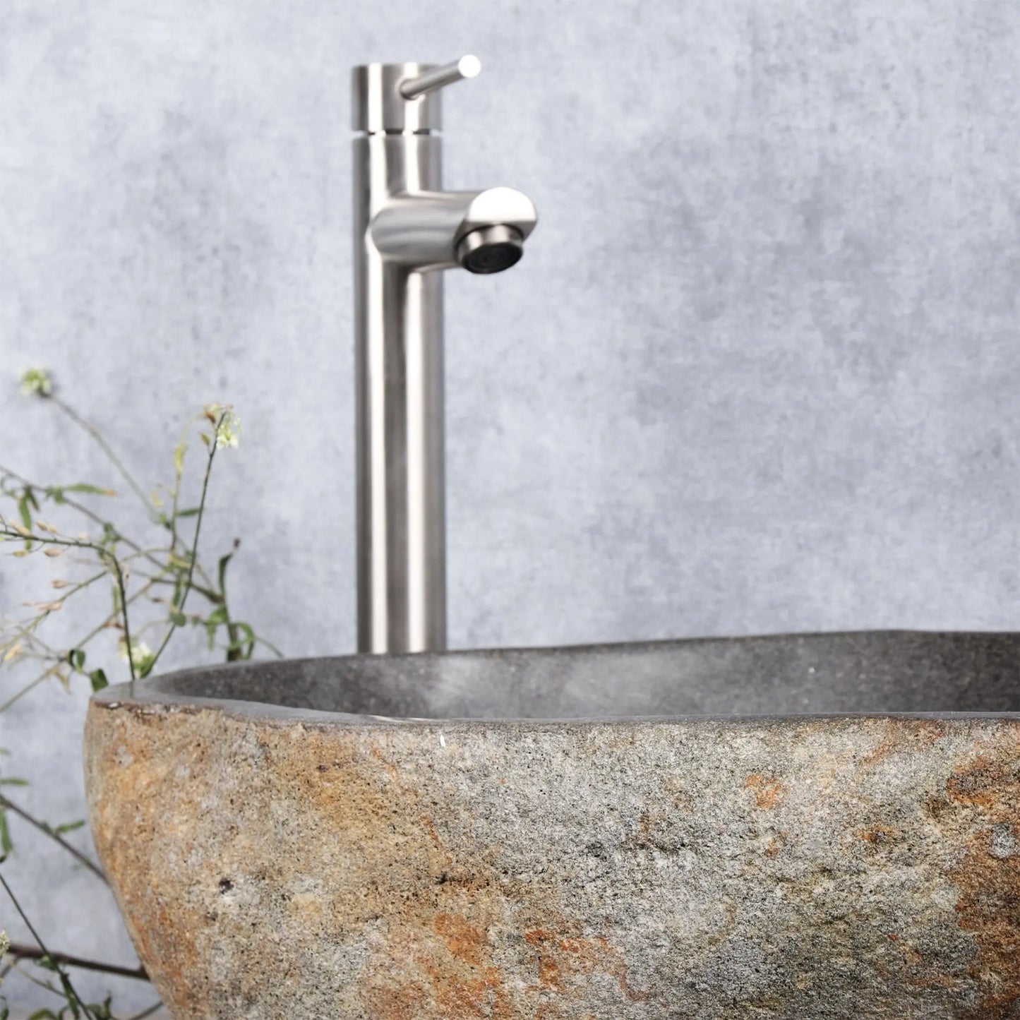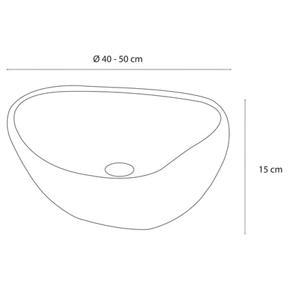 Complete your bathroom with these beautiful, unique river stone washbasins. The Differnz Lombok is more than just a washbasin. It's a hollowed-out river stone that makes the Bangkok unique. Its appearance creates a playful yet sleek effect, complementing various styles. The washbasin has a warm gray-cream color and measures approximately 40-50 cm in diameter. This makes each washbasin unique and unique. This contemporary washbasin requires no special treatment before use and fits all countertops. With a wide vanity unit, placing two side by side is a nice touch. The exact size of the washbasin depends on the stone. The washbasin does not include a siphon or a long, always-open drain plug. To keep your washbasins in good condition, it's necessary to impregnate them several times a year. This prevents water and dirt stains and ensures that your washbasin will last for a long time. You can use any suitable impregnating agent for natural stone. To keep the river stone clean, it's best to clean it once a week with a soft cloth and an acid-free cleaning agent, then wipe it dry. The exterior can be cleaned with a soft brush.