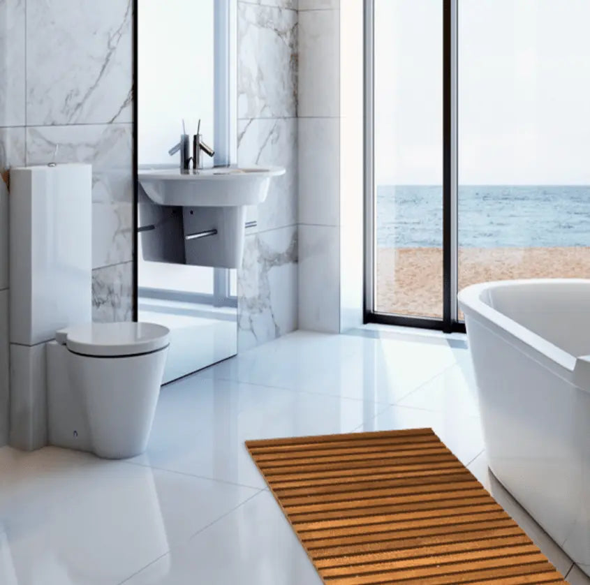 This high-quality wooden bath mat is suitable for your bathroom or sauna and is made of Acacia wood. This bath mat is suitable for bathrooms and not for the shower. The oil is water-repellent.
