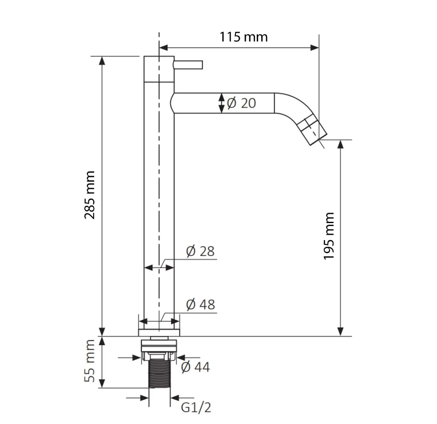 Specifications Fountain tap Creavit Aloni Chrome Brass 1/2'' Connection: