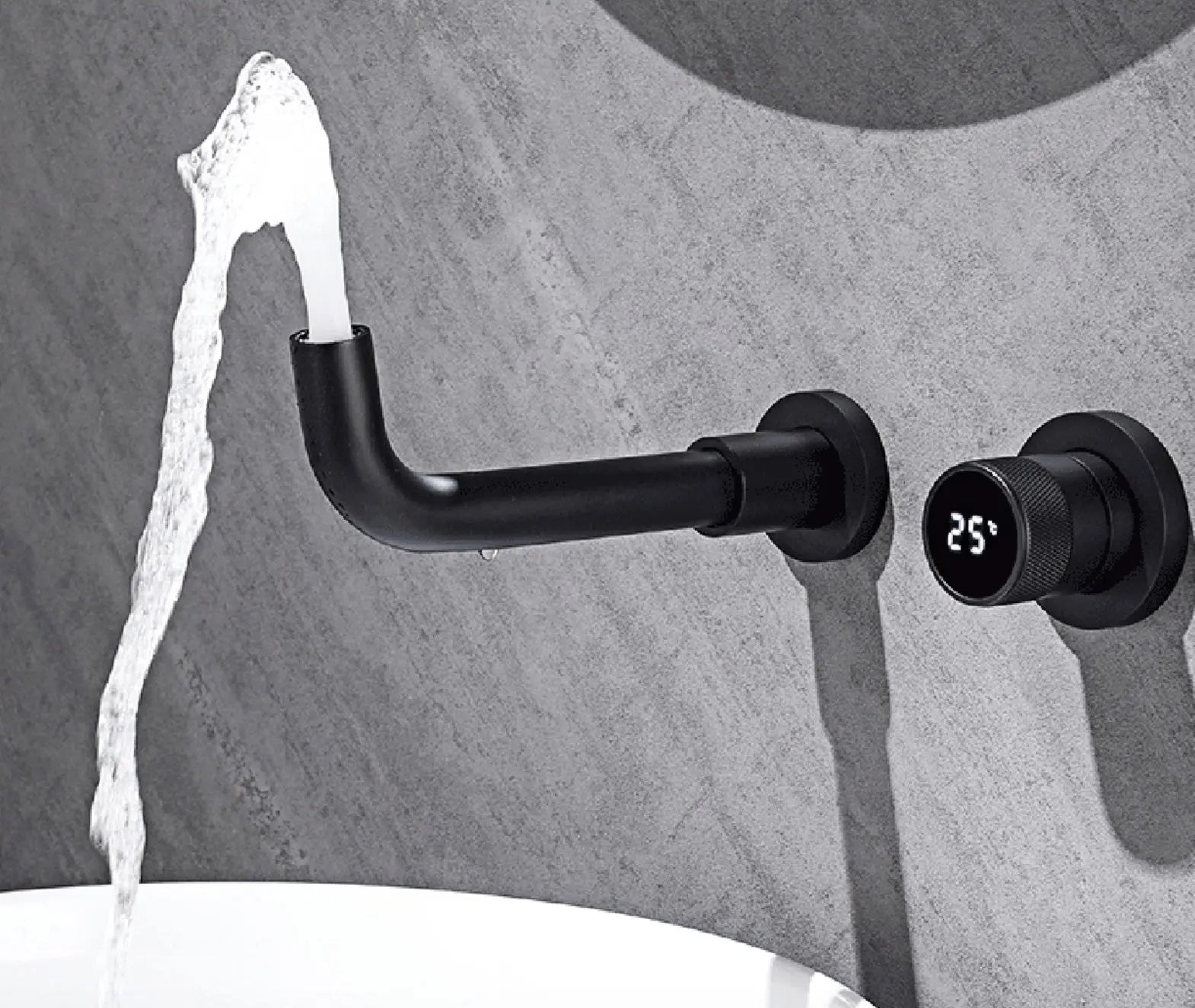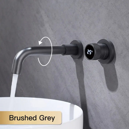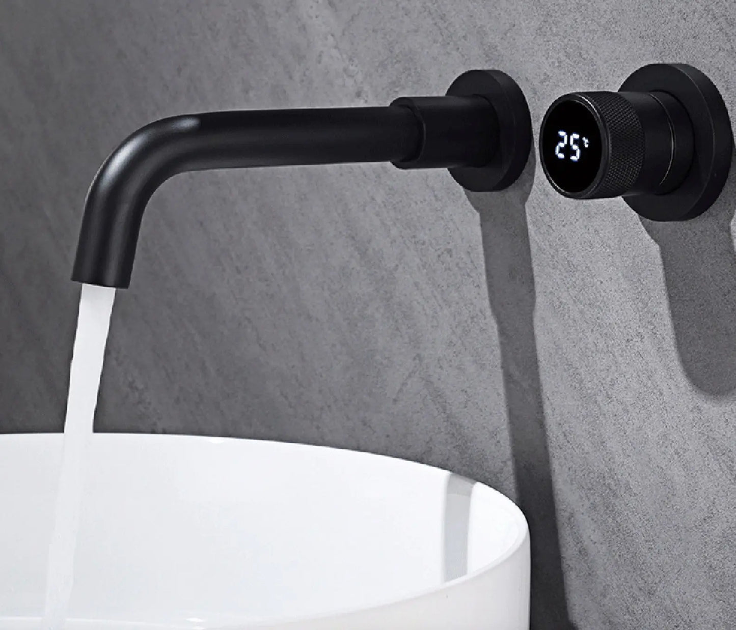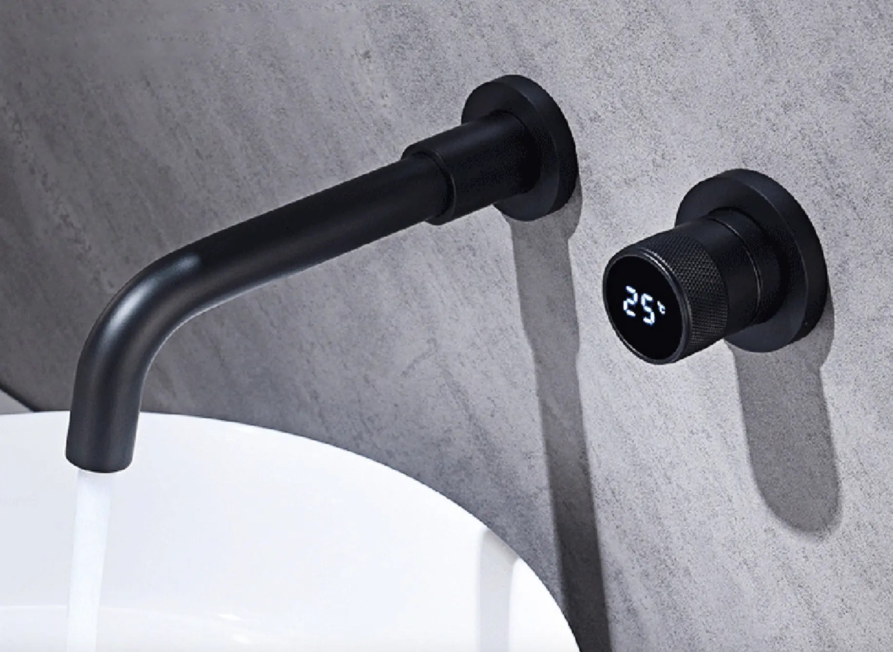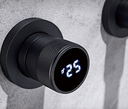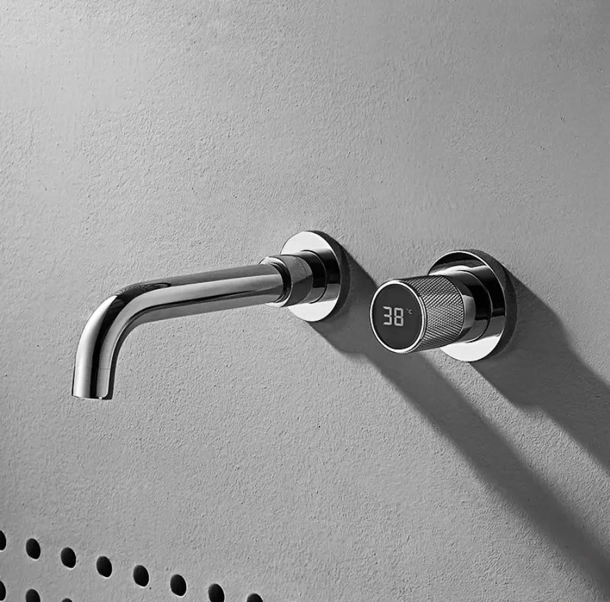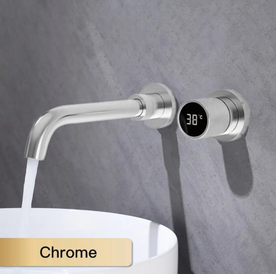 This stylish design wall tap is a real eye-catcher and uniquely modern in terms of design and luxury. The tap is a wonderful addition to any kitchen or bathroom. The tap is made of high-quality stainless steel and brass so that it lasts extra long. The temperature knob is equipped with an LCD display to display the temperature. The wall tap has a matte black color and is easy to install. The tap is in a flush-mounted box so that it can be safely installed in the wall without being damaged by environmental factors.