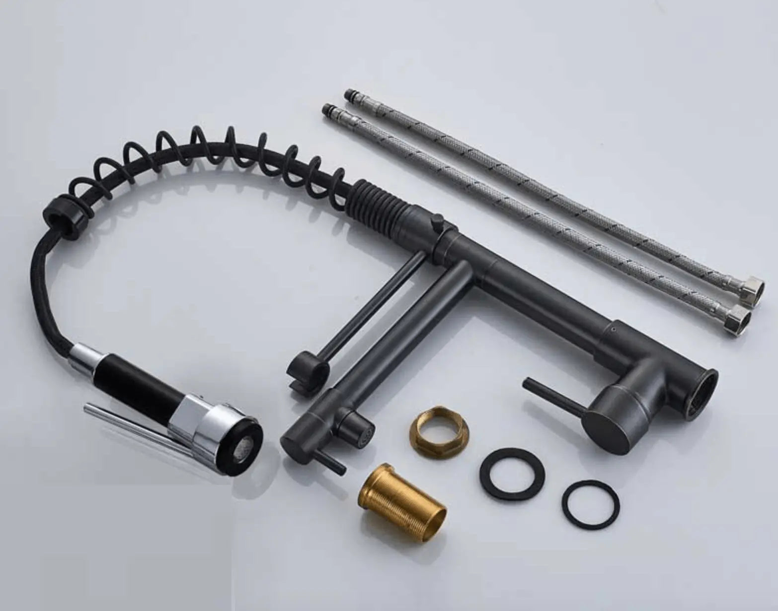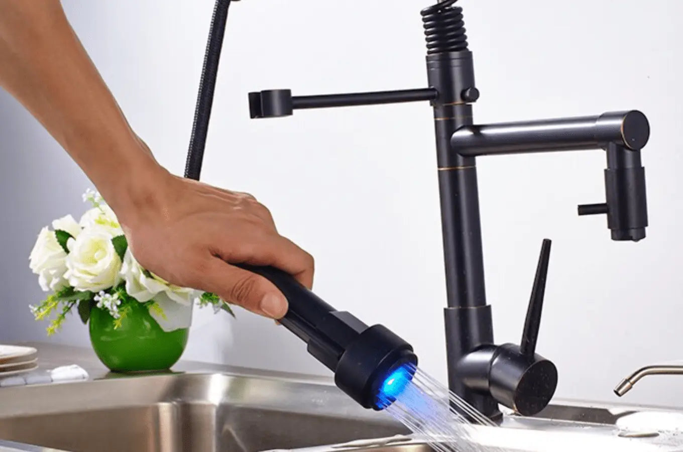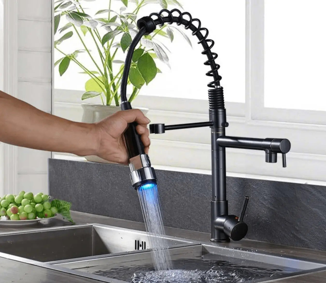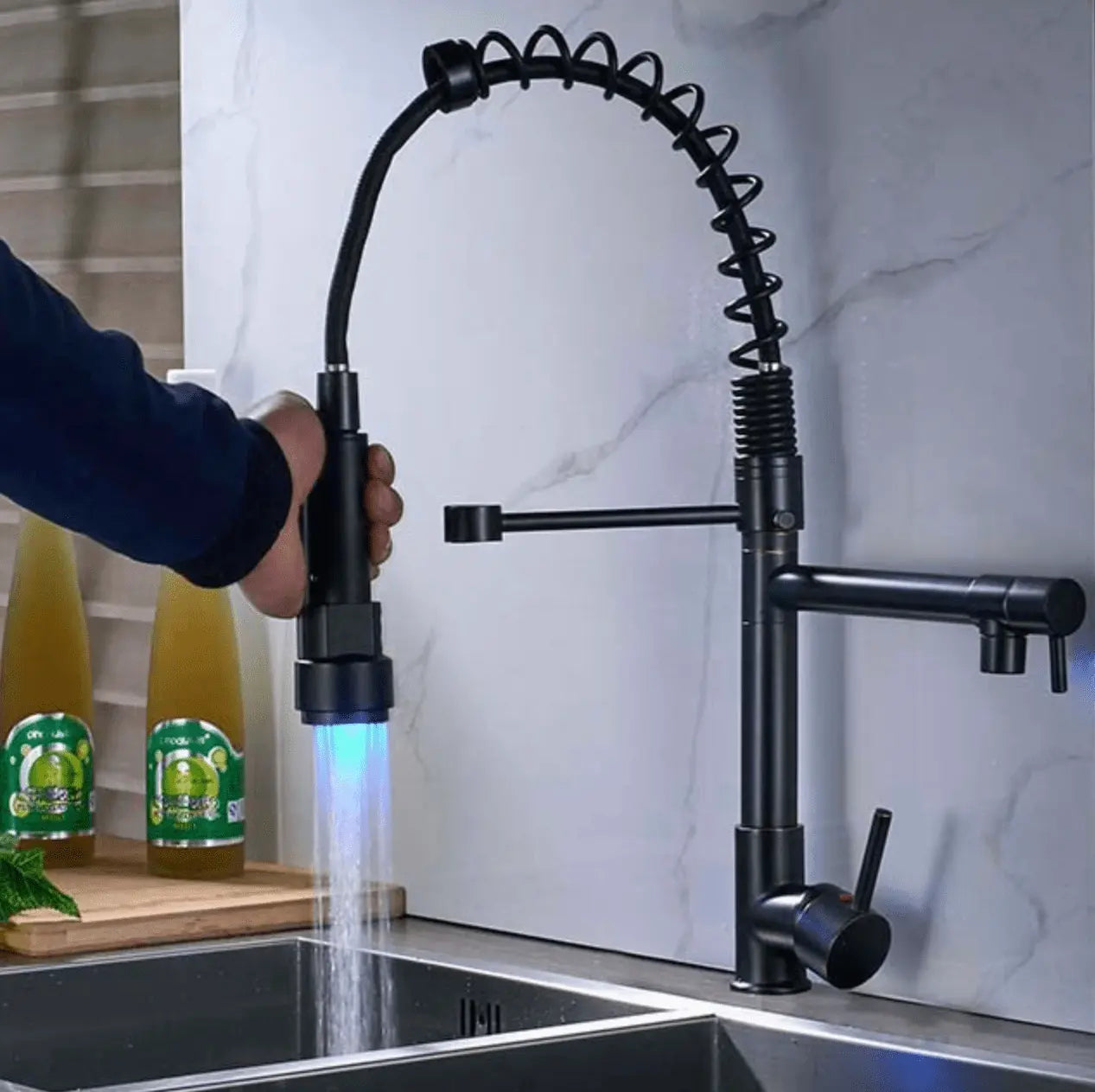 SaniSupreme Napoli Kitchen tap with LED Spray head and extra spout matt black-bronze chrome spray head