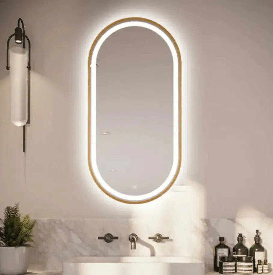The Sanisupreme Vista Oval Bathroom Mirror has a sleek and elegant design that is not only practical but also adds a luxurious touch to your bathroom. Its oval shape fits perfectly into various bathroom styles, whether modern, minimalist, or classic. The brushed gold finish creates an exclusive and warm look that combines effortlessly with other fixtures and accessories.