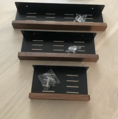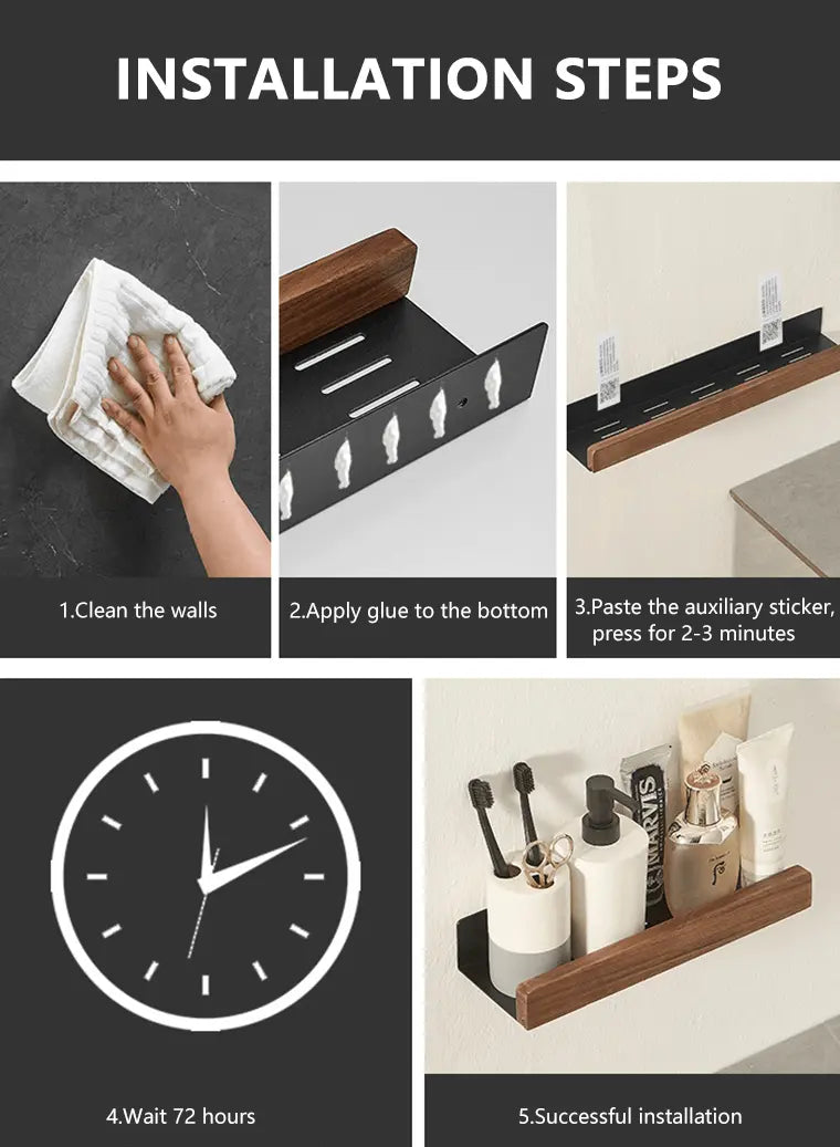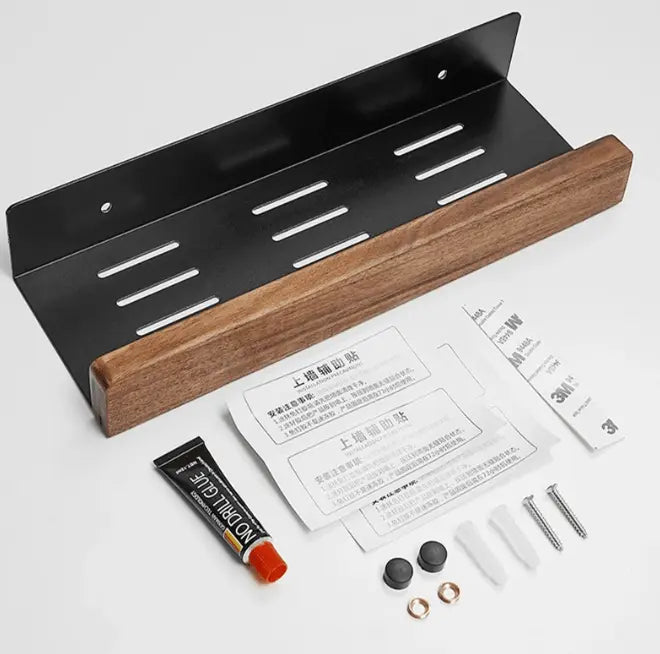 Sanisupreme Wall shelf Shower rack matt black walnut edge 30 cm. Stainless steel