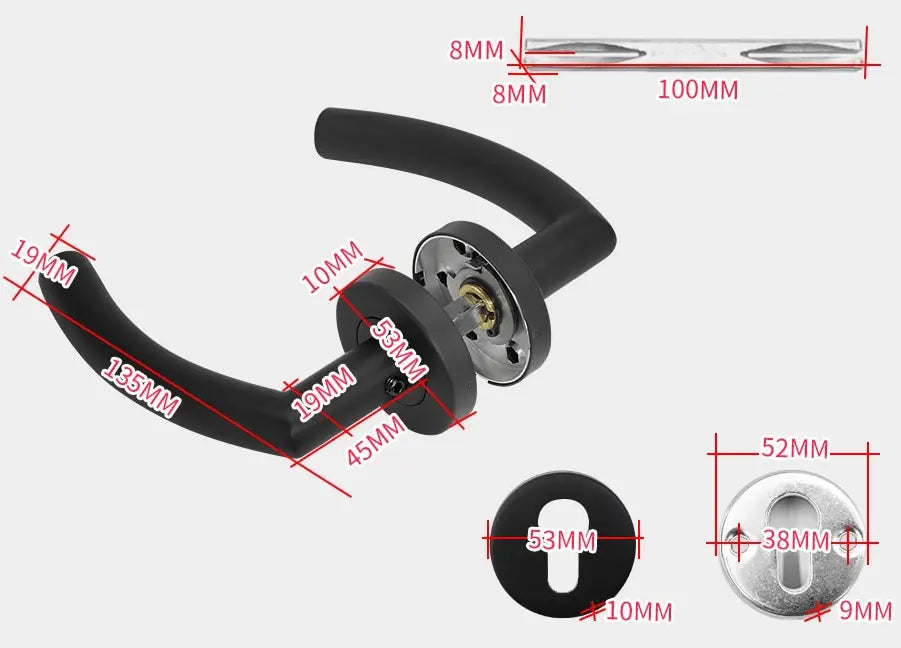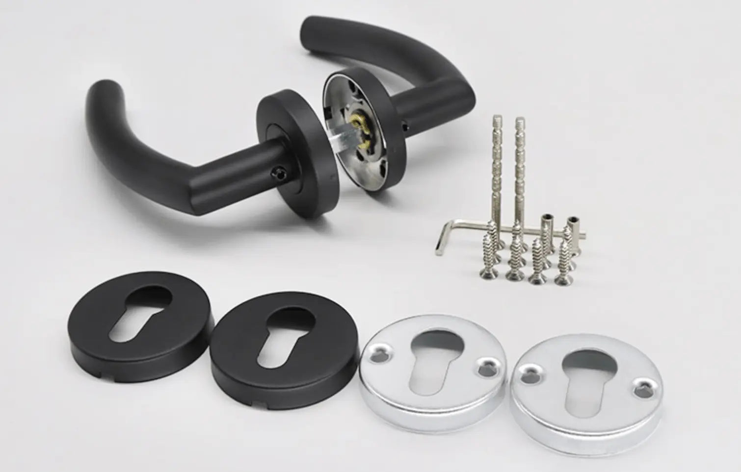 SaniSupreme deurkruk, deurgreep, complete set (2 stuks) met slotgaten en materiaal mat zwart