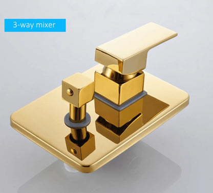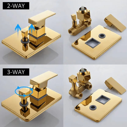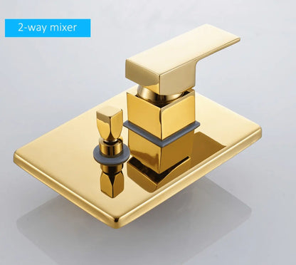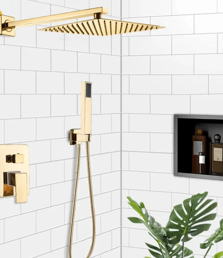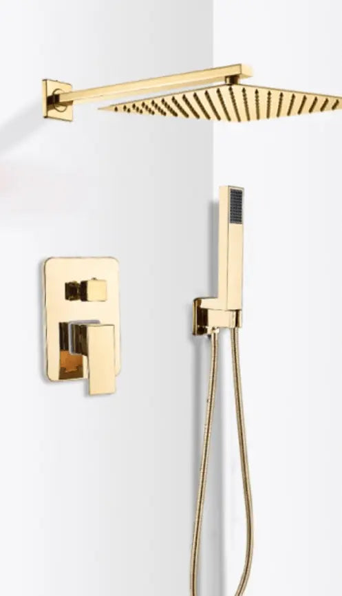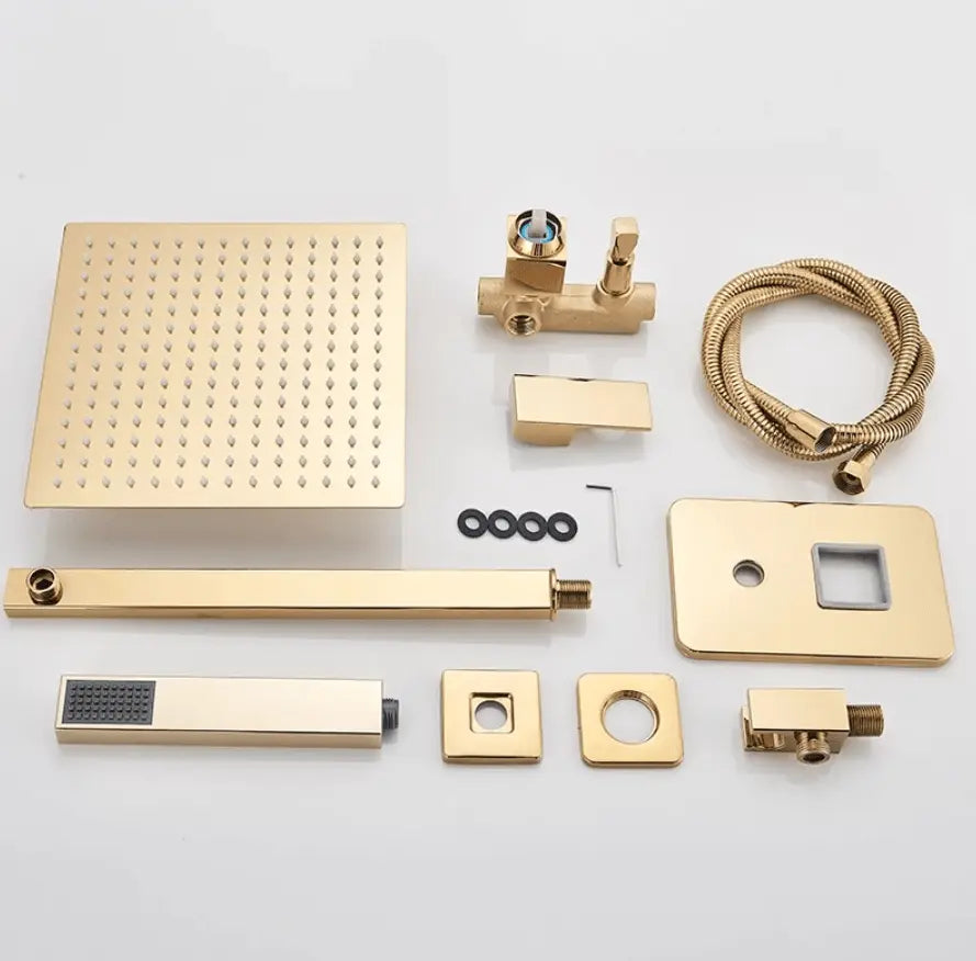 SaniSupreme Doucheset Costa Rica 20 cm. regendouche vierkant 2-weg goud glans inbouw