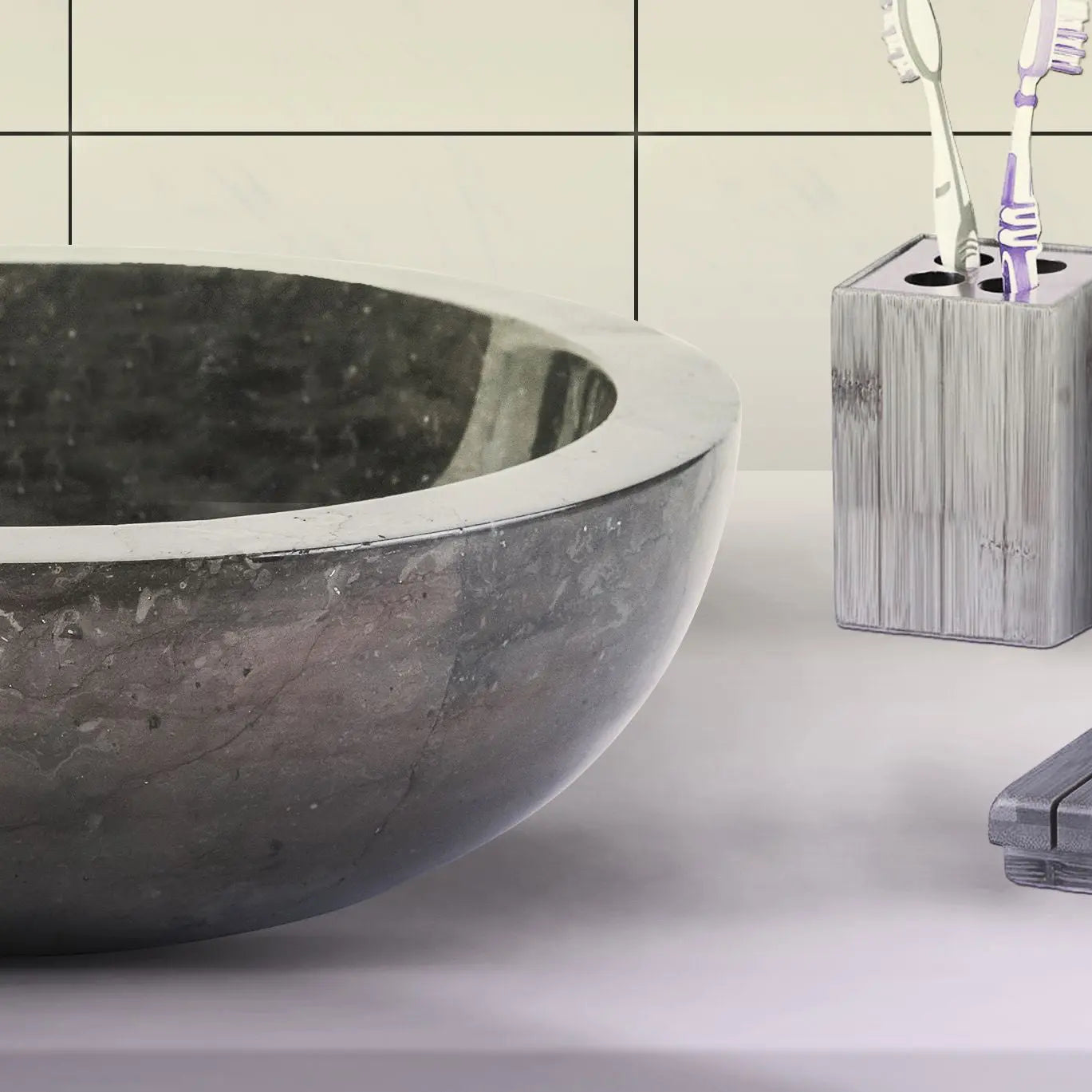 SaniSupreme Volledig gepolijste waskom van steen - Zwart Marmer 35x12CM