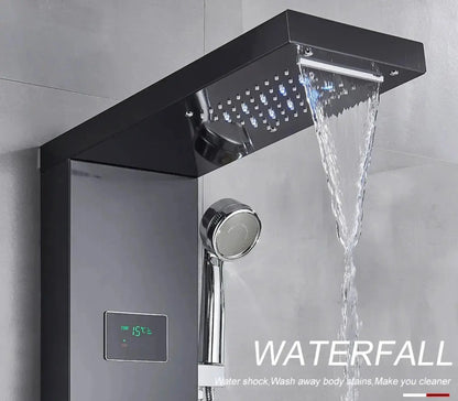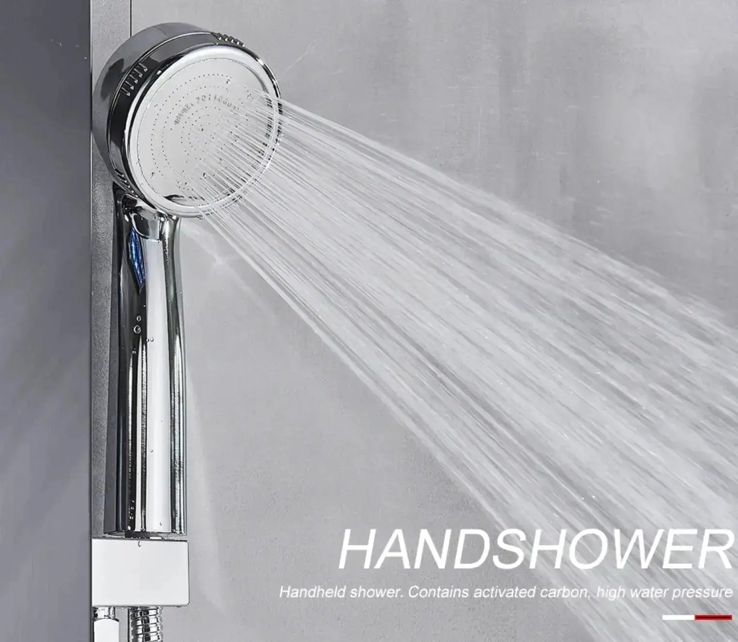 ✅ 5-in-1 Douchesysteem - Met dit douchepaneel heb je keuze uit 5 comfortabele douche modi: waterval, regenval, vier jet-massagestralen, een handdouche en een onderkraan.