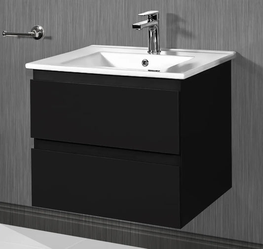 SaniSupreme® Aloni Badmeubel Sally 60 mat zwart keramische wastafel wit